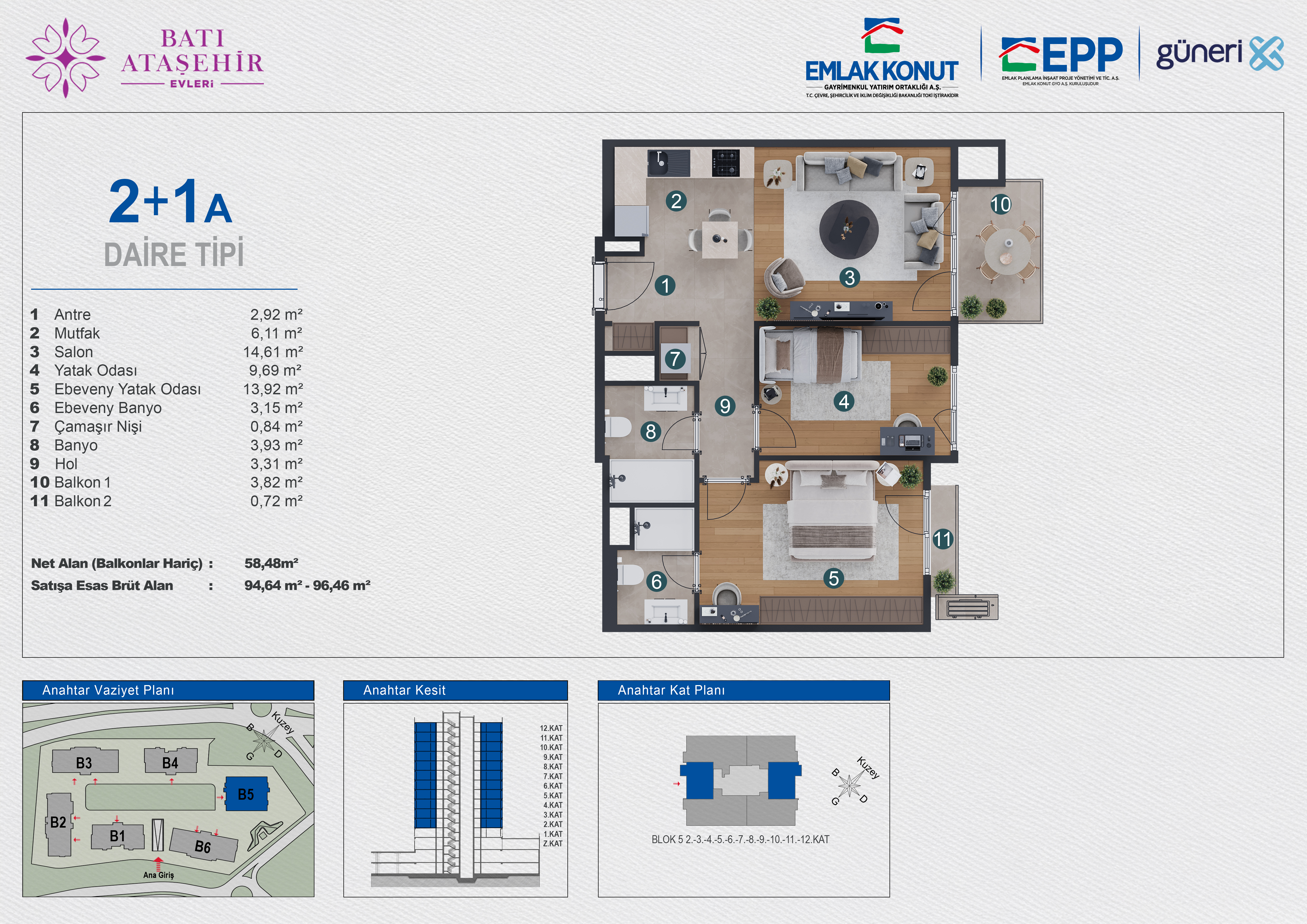1+1’den 4+1’e uzanan farklı daire seçenekleriyle ferah ve konforlu bir yaşam sunan Batı Ataşehir Evleri, 1100 m²’lik sosyal tesisiyle tüm gereksinimlerinizi tek bir çatı altında buluşturuyor. Sağlıklı ve zinde bir yaşam için her mevsim kullanabileceğiniz iki adet kapalı havuz, iki spor salonu ve günün yorgunluğunu geride bırakacağınız sauna gibi imkanlar sunan proje, araçlarınız için de güvenli bir kapalı otopark ayrıcalığı sağlıyor. Doğayla iç içe bir yaşam sürmenizi sağlayacak 7 bin m²’lik geniş peyzaj alanı, süs havuzu, çocuk ve gençler için tasarlanmış özel oyun alanları ve huzur dolu yürüyüş yollarıyla Batı Ataşehir Evleri, sizlere her anı keyif dolu bir yaşam vadediyor.